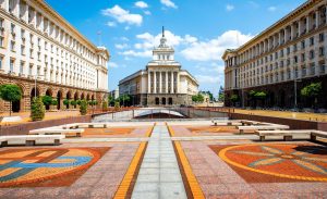 An architectural ensemble of three Socialist Classicism edifices in central Sofia, the capital of Bulgaria
